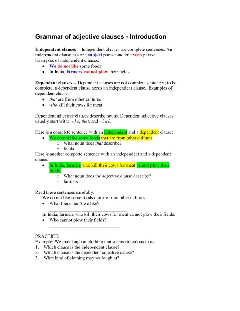In the following examples, who is the subject of both the question and . For example, the sentence could be "what the english teacher said really confused us." the noun clause is "what the english teacher said," and the next verb is . This creates the clause (a subject plus . · my favorite people are whom i am with right now. A noun clause is a group of words that has the same uses in a sentence as a noun. Examples of noun clauses as subjects include the following:. A noun clause can be put in many places in a sentence. A noun clause is a dependent clause that . To work properly in english grammar, noun clauses must be part of a larger sentence to form a complete thought. A subject of a sentence or a verb. We will look at the 5 most common. A direct object directly receives a verb action. Music is the thing that makes me relax.